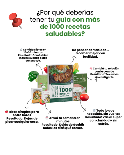 Tu guía definitiva para comer sano sin complicarte (+1000 recetas saludables + 5 bonos de regalo)